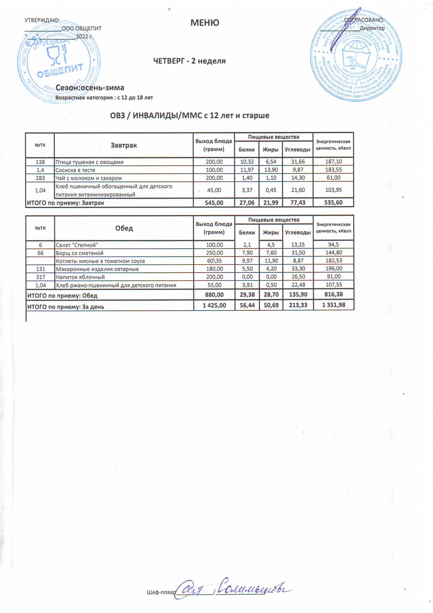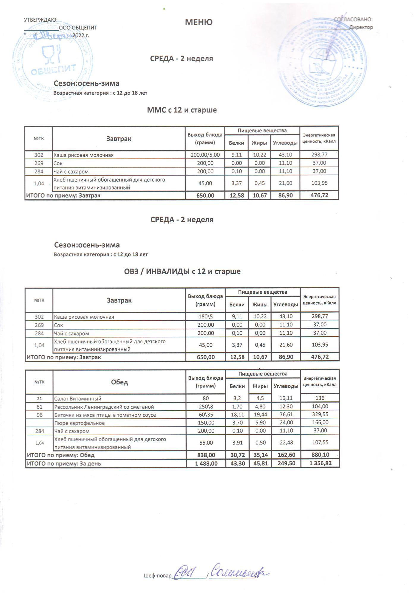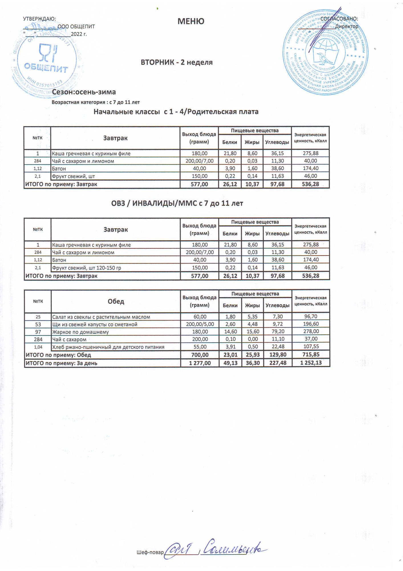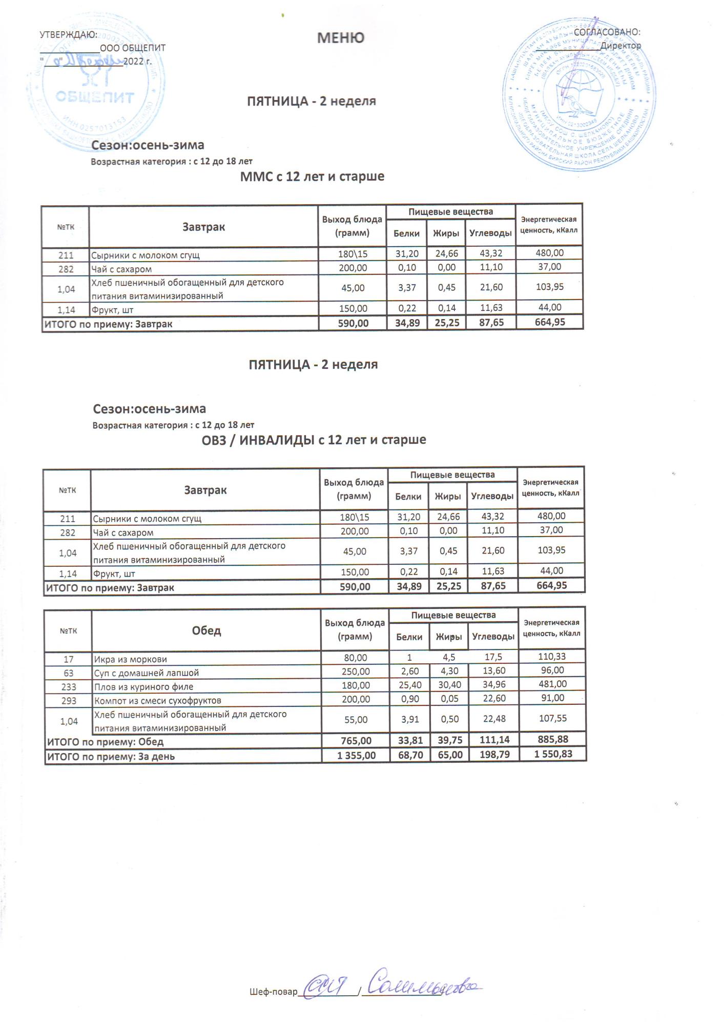 Двухнедельное меню за 2022-2023 учебный год(осень-зима)