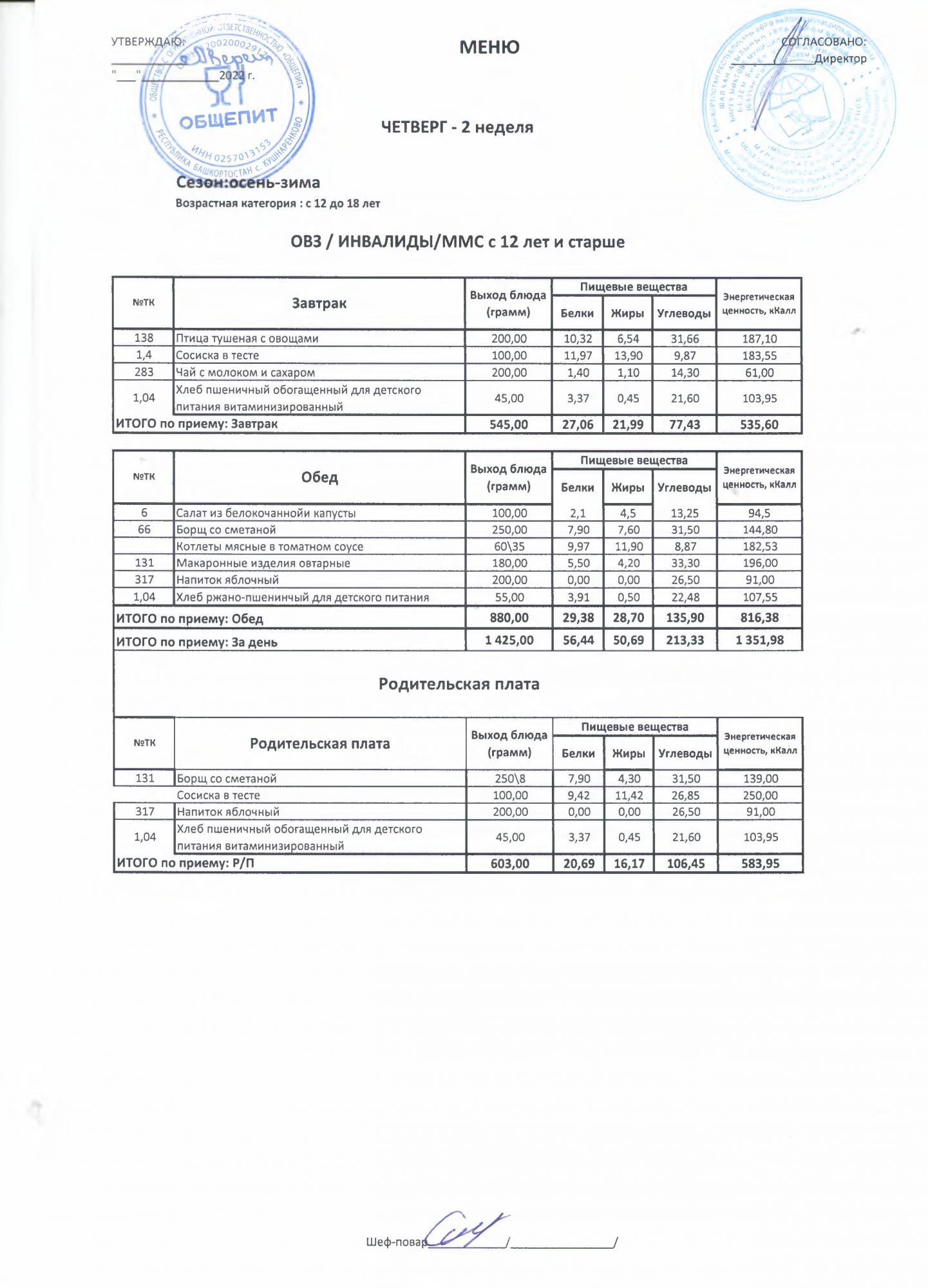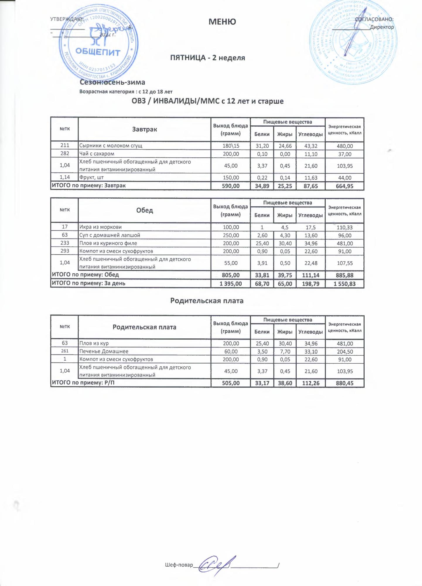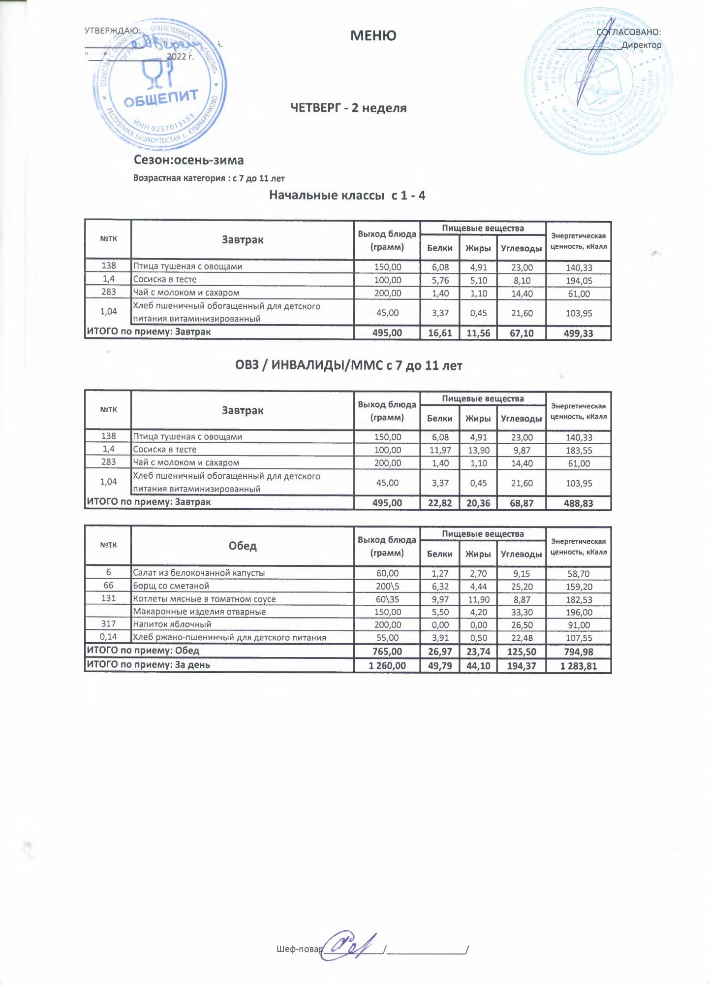 Двухнедельное меню за 2022-2023 учебный год(осень-зима)