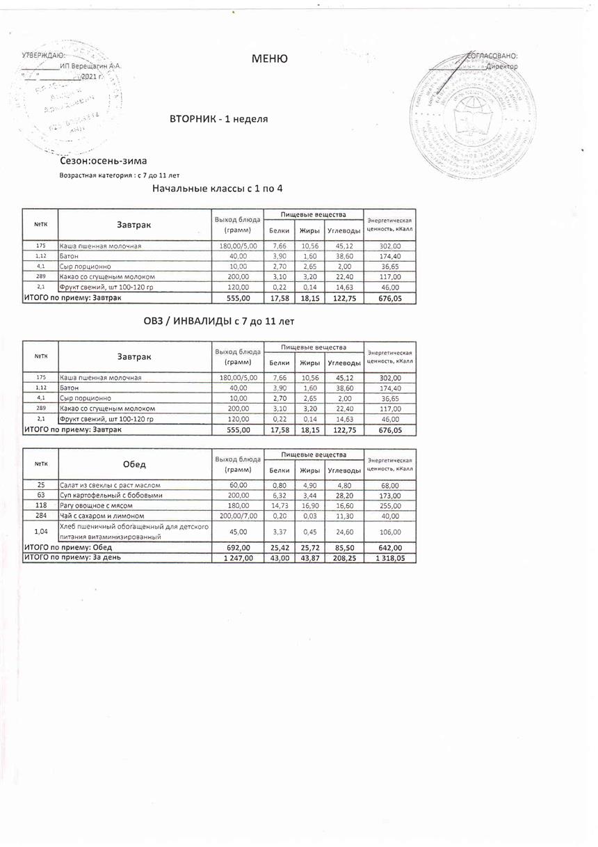 Двухнедельное меню за 2022-2023 учебный год(осень-зима)