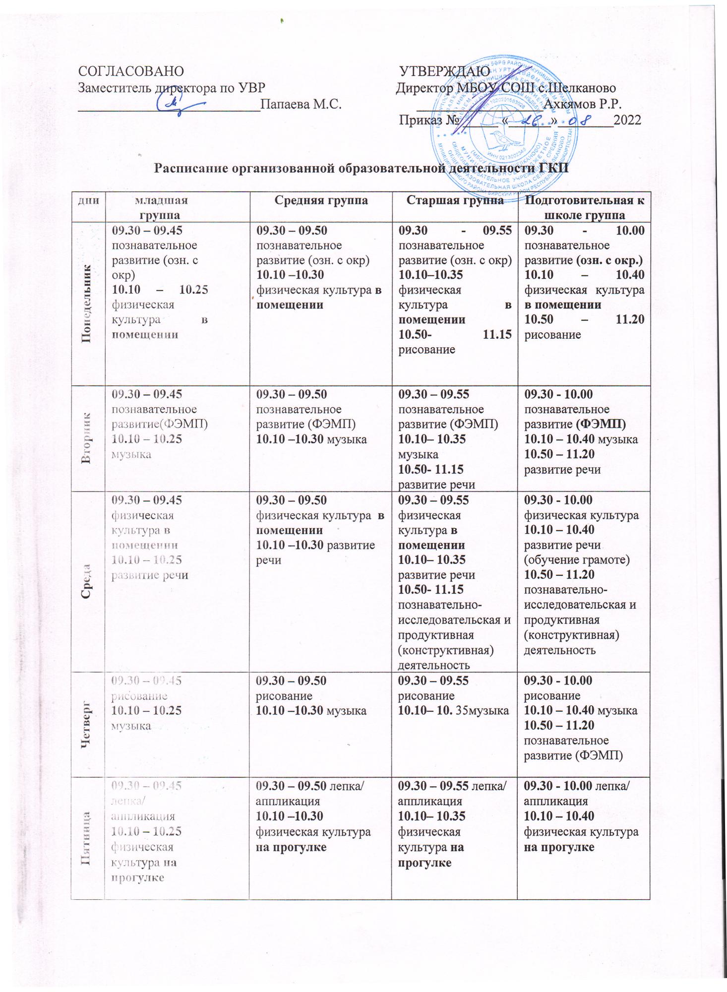 Расписание садик
